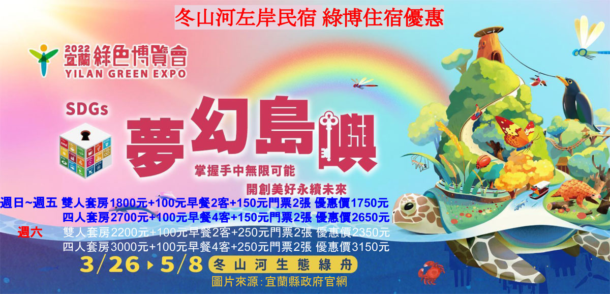 冬山河左岸民宿 春賞綠博 住宿專案 Posted 2021-03-13